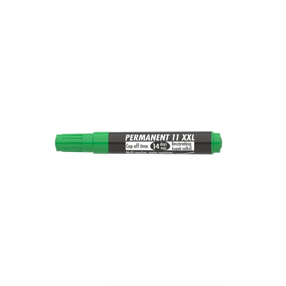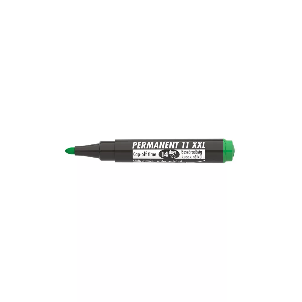 Műanyag, üveg, fém, fa, illetve szinte minden felület feliratozására, jelölésére alkalmas, alkoholbázisú festékkel töltött permanent marker. Speciális tulajdonsága, hogy 14 napig kupak nélkül sem szárad be. Gyorsan száradó festék, írásképe törlés- és vízálló. Megnövelt élettartam a nagyobb méretű testnek köszönhetően. Kerek és vágott csúccsal. Katalóguskód: 24646