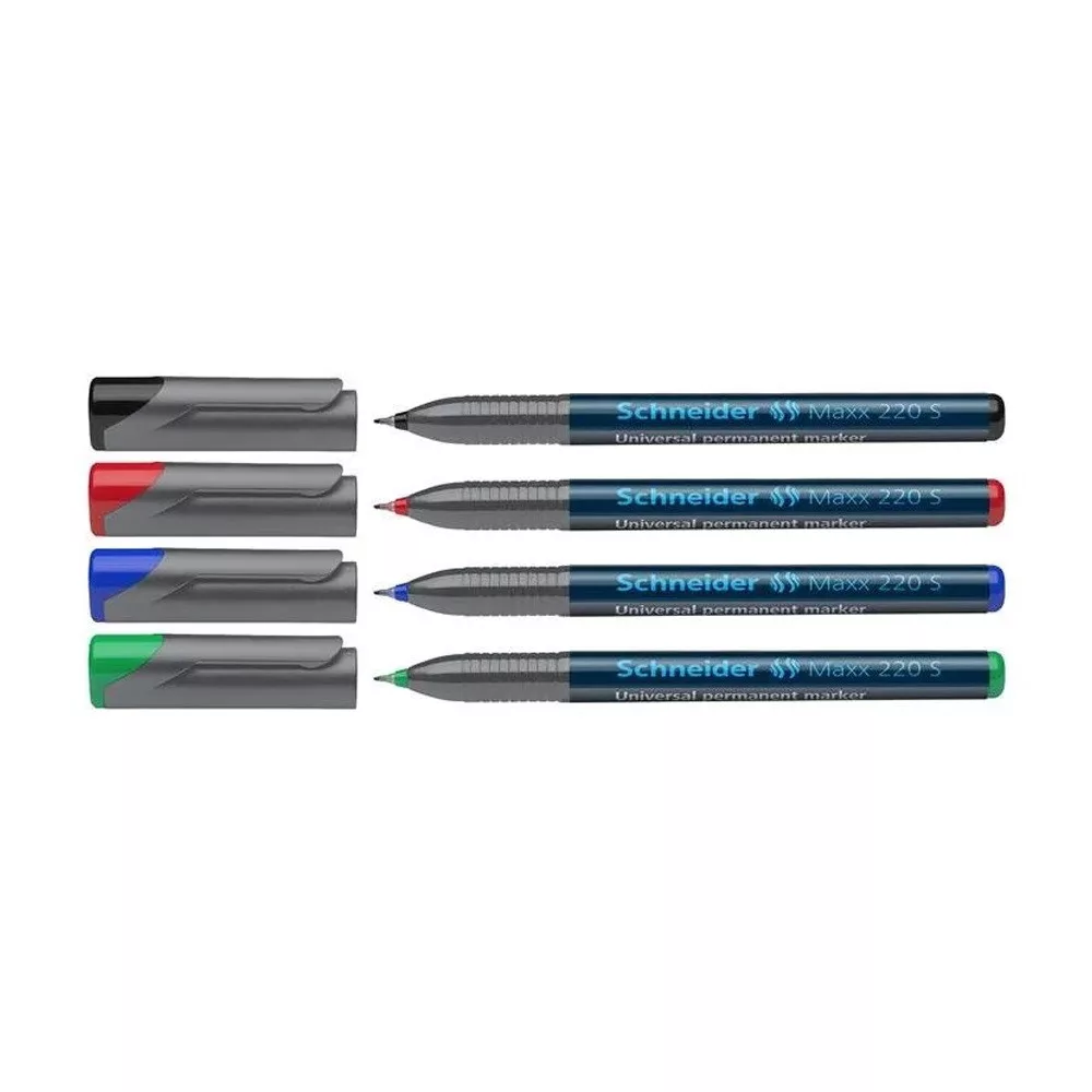 Alkoholos marker OHP, 0,4 mm, SCHNEIDER "Maxx 220 S" - vízálló és törlésbiztos - fóliára és minden sima felületre használható - gyorsan szárad - a színek élénkek és fényesek maradnak - a kupak színével megegyező tinta - vonalvastagság: 0,4 mm - tűhegyű Katalóguskód: 42328