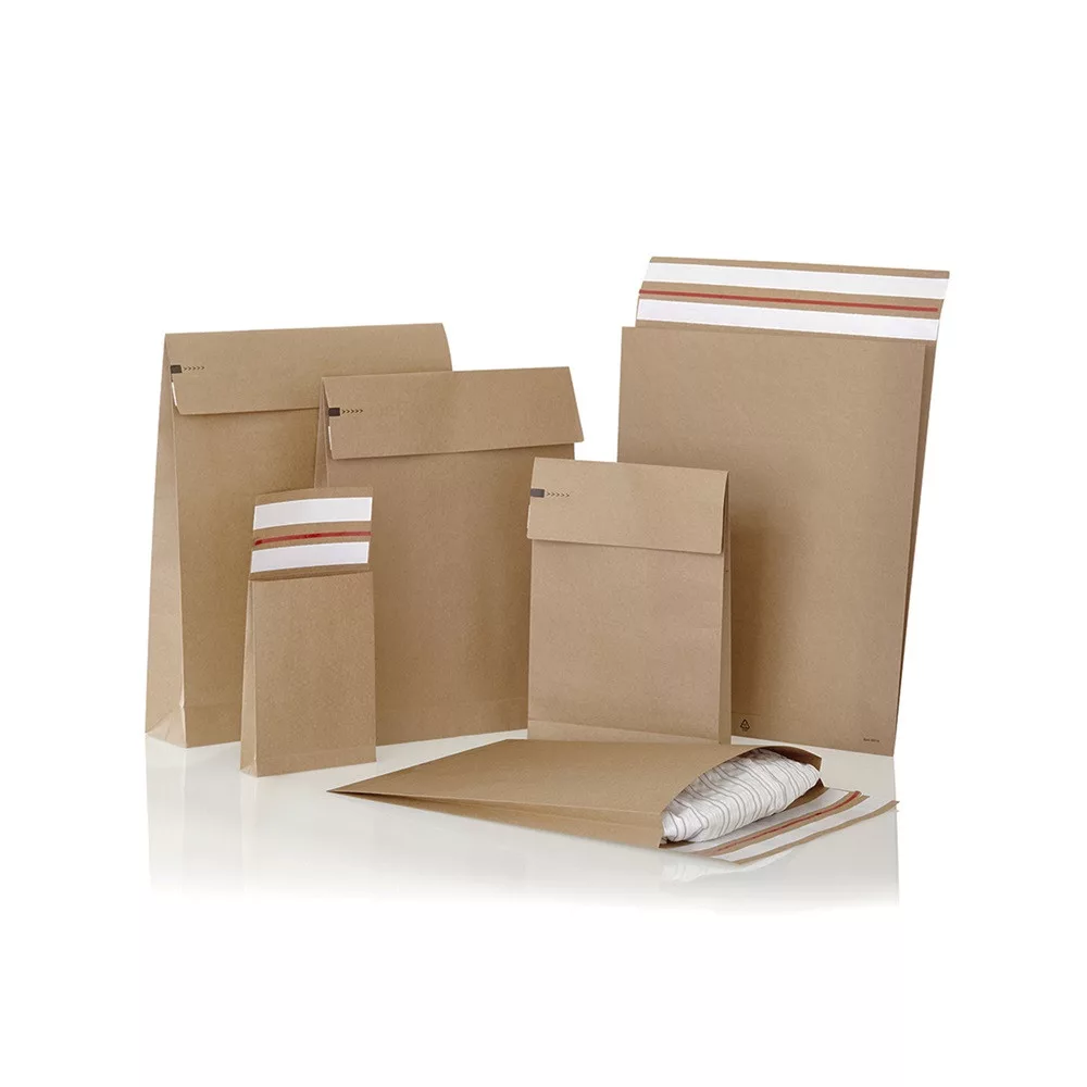 Csomagküldő webshop tasak 250x350x50mm, erős kraft papírból 250 db/doboz, E-green barna
