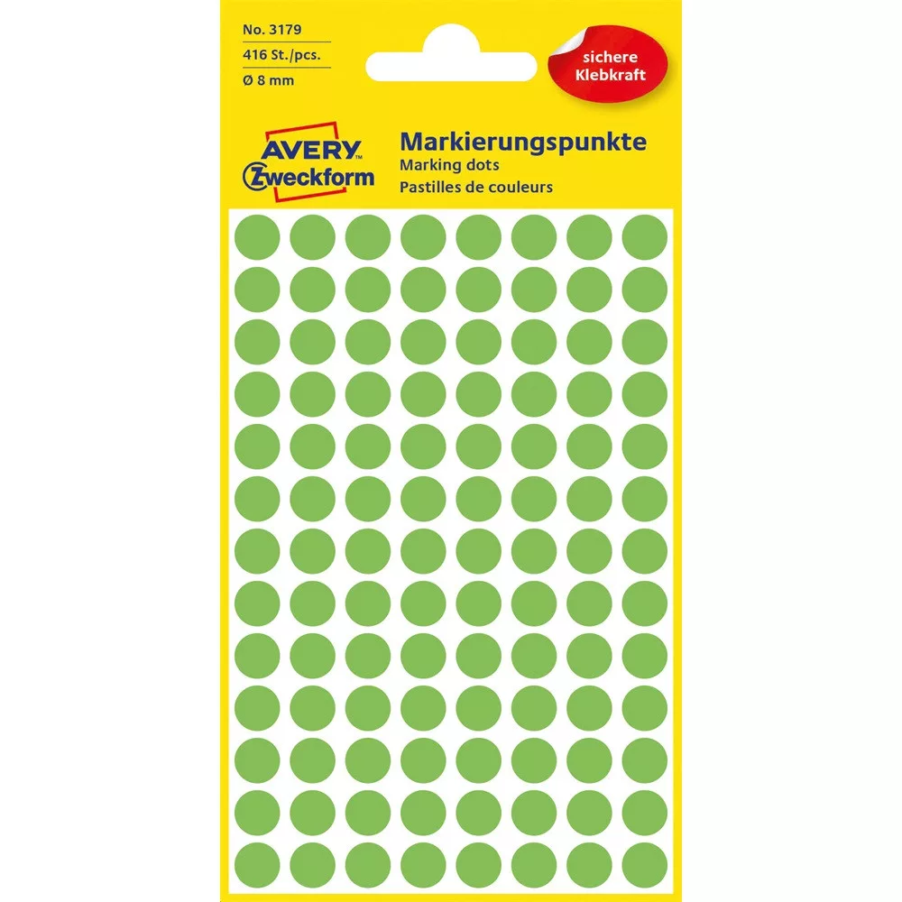 Etikett címke, o8mm, jelölésre, neon 104 címke/ív, 4 ív/doboz, Avery zöld
