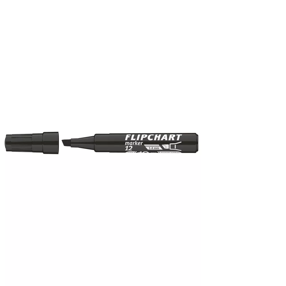 Flipchart tömbök és egyéb papírívek feliratozására alkalmas, vízbázisú festékkel töltött marker. A festék a papír másik oldalára nem üt át. Megnövelt élettartam a nagyobb méretű testnek köszönhetően. Vágott csúccsal. Vonalvastagság: 1-4 mm.Katalóguskód: 24689