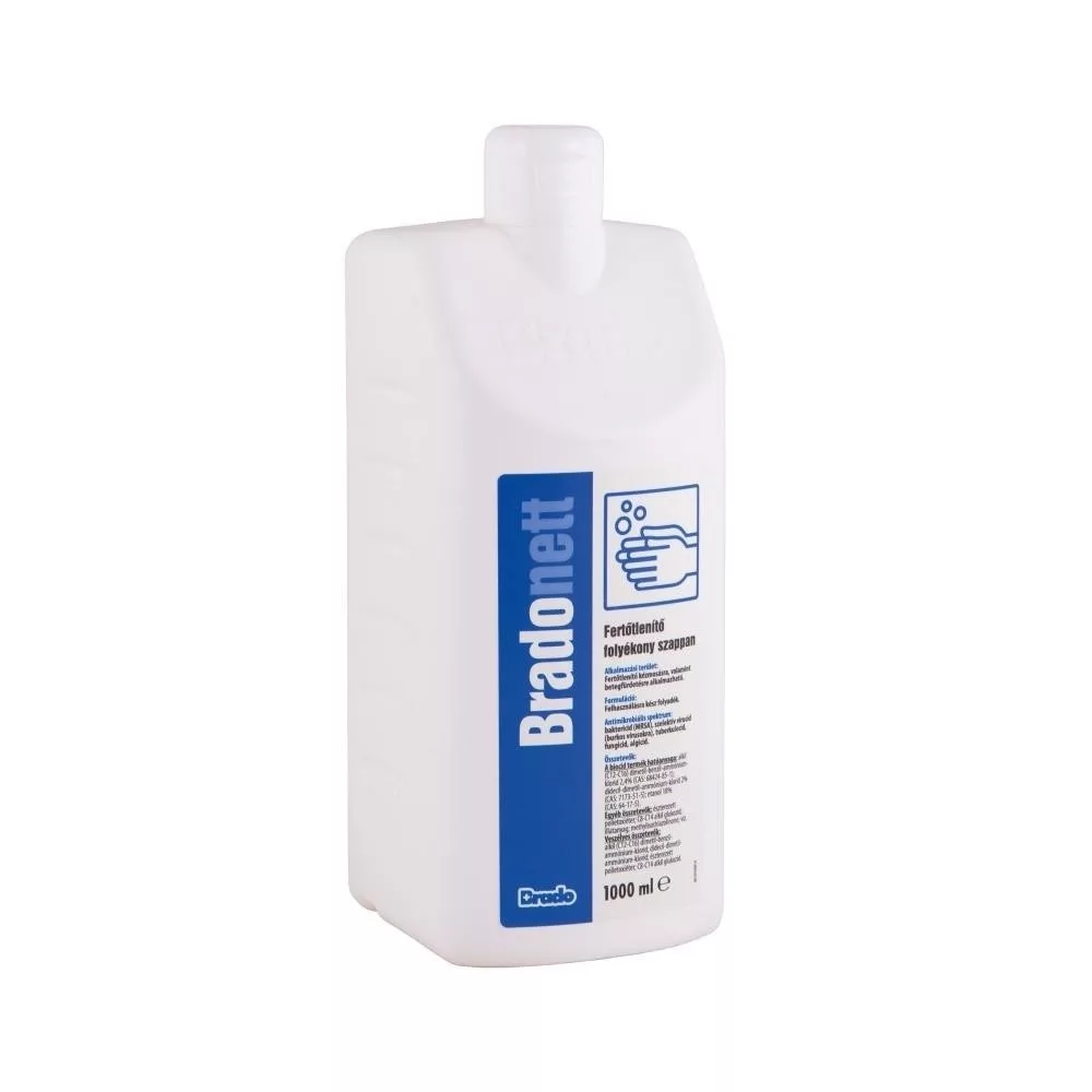 A Bradonett fertőtlenítő hatású folyékony szappan, amely kifejezetten a kéz tisztítására és fertőtlenítésére szolgál. Tartalmaz antibakteriális hatóanyagokat, amelyek hatékonyan elpusztítják a baktériumokat és kórokozókat. Bizonyos vírusok ellen is hatékony lehet, így növeli a higiénia szintjét. Mindennapi használatra is alkalmas, nem szárítja ki a bőrt. Kellemes, friss illata van, amely hosszantartó tisztaságérzetet biztosít.