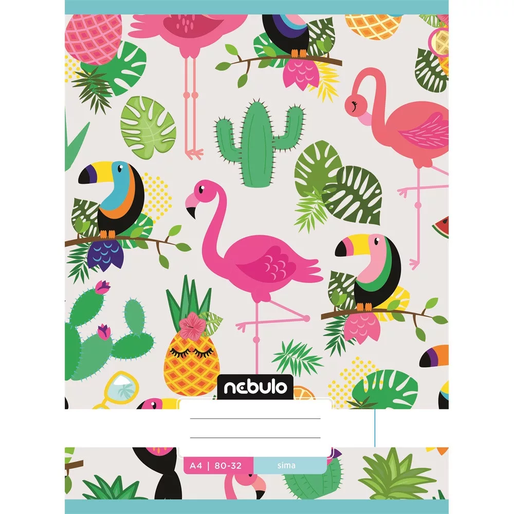 A/4-es tűzött iskolai sima füzet, 32 lapos (80-32). 12 db füzet (12 különböző minta) van egy csomagban. 70 g-os füzetlapok és 200 g-os műnyomó borító fényes fóliával.