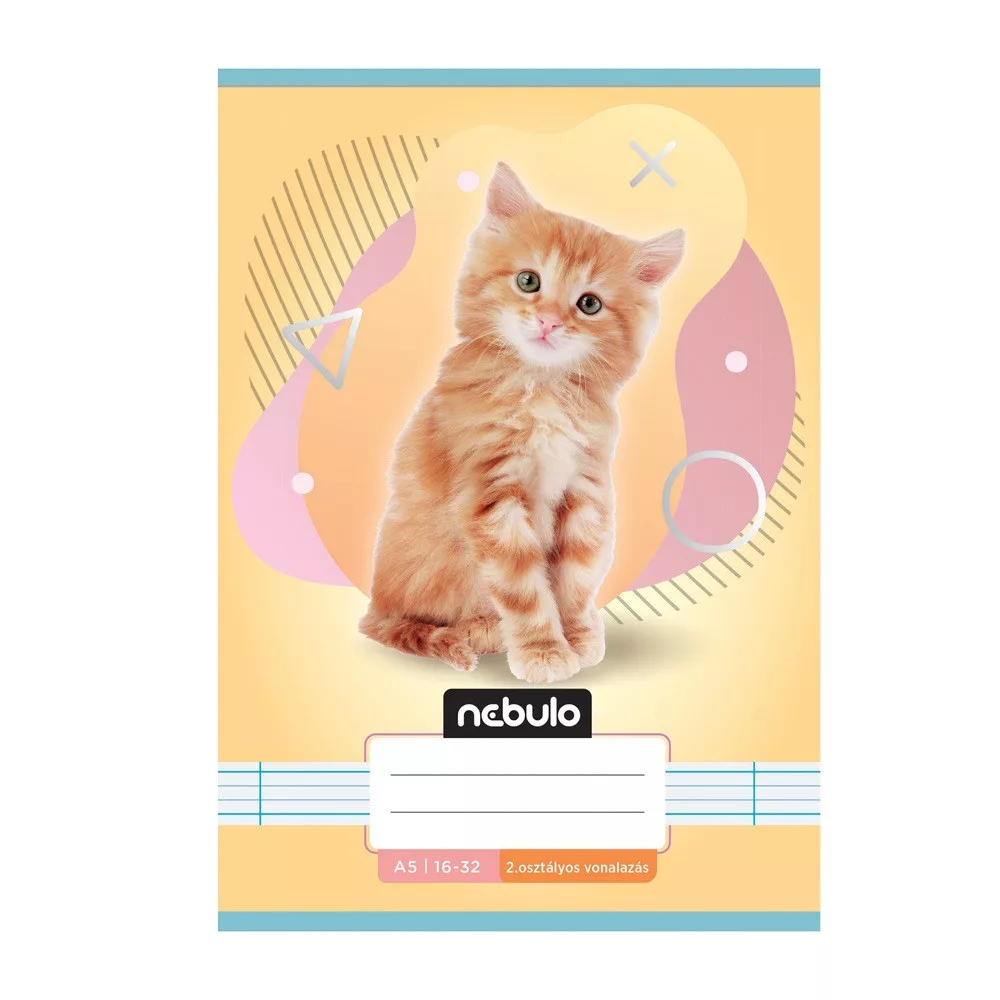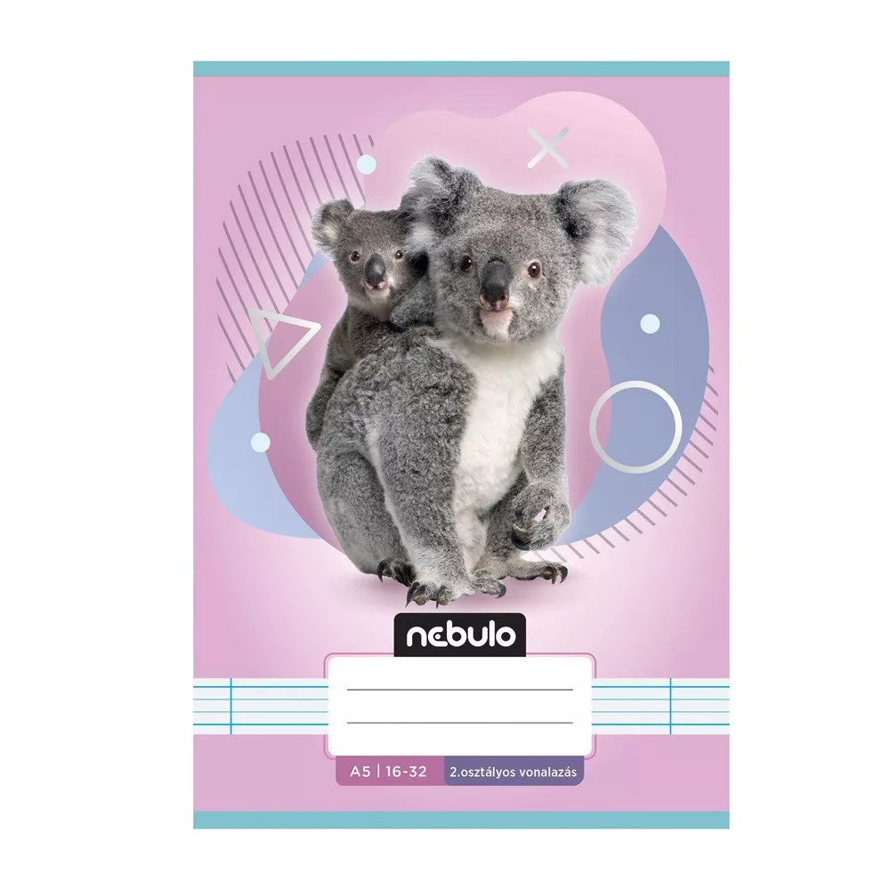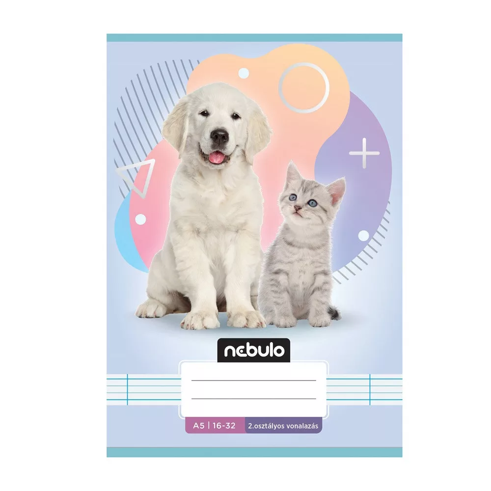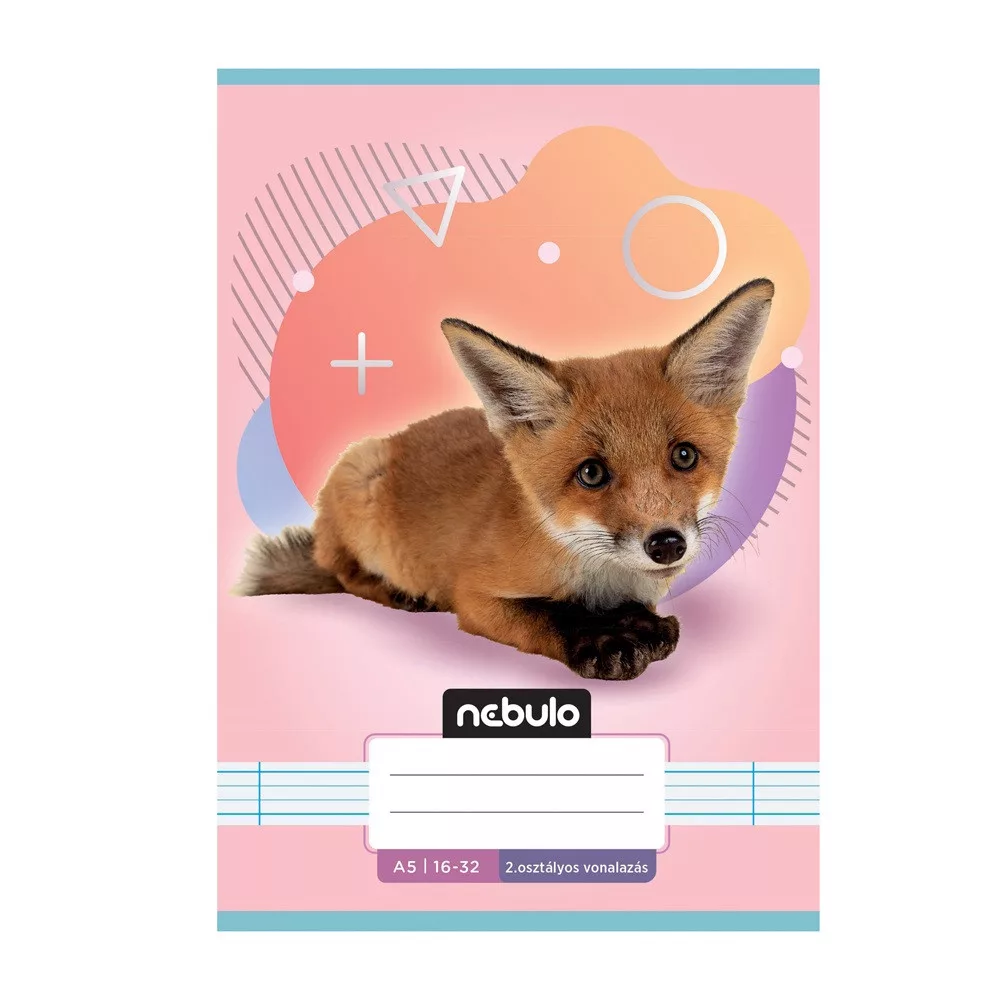 Füzet, A5, 2. osztályos vonalas, 16-32, Állatos minták, 16 db/csomag Nebulo