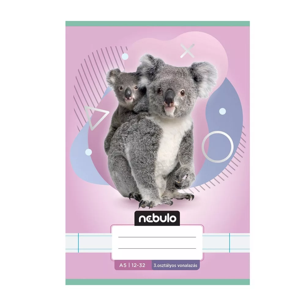 Füzet, A5, 3. osztályos vonalas, 12-32, Állatos minták, 16 db/csomag Nebulo