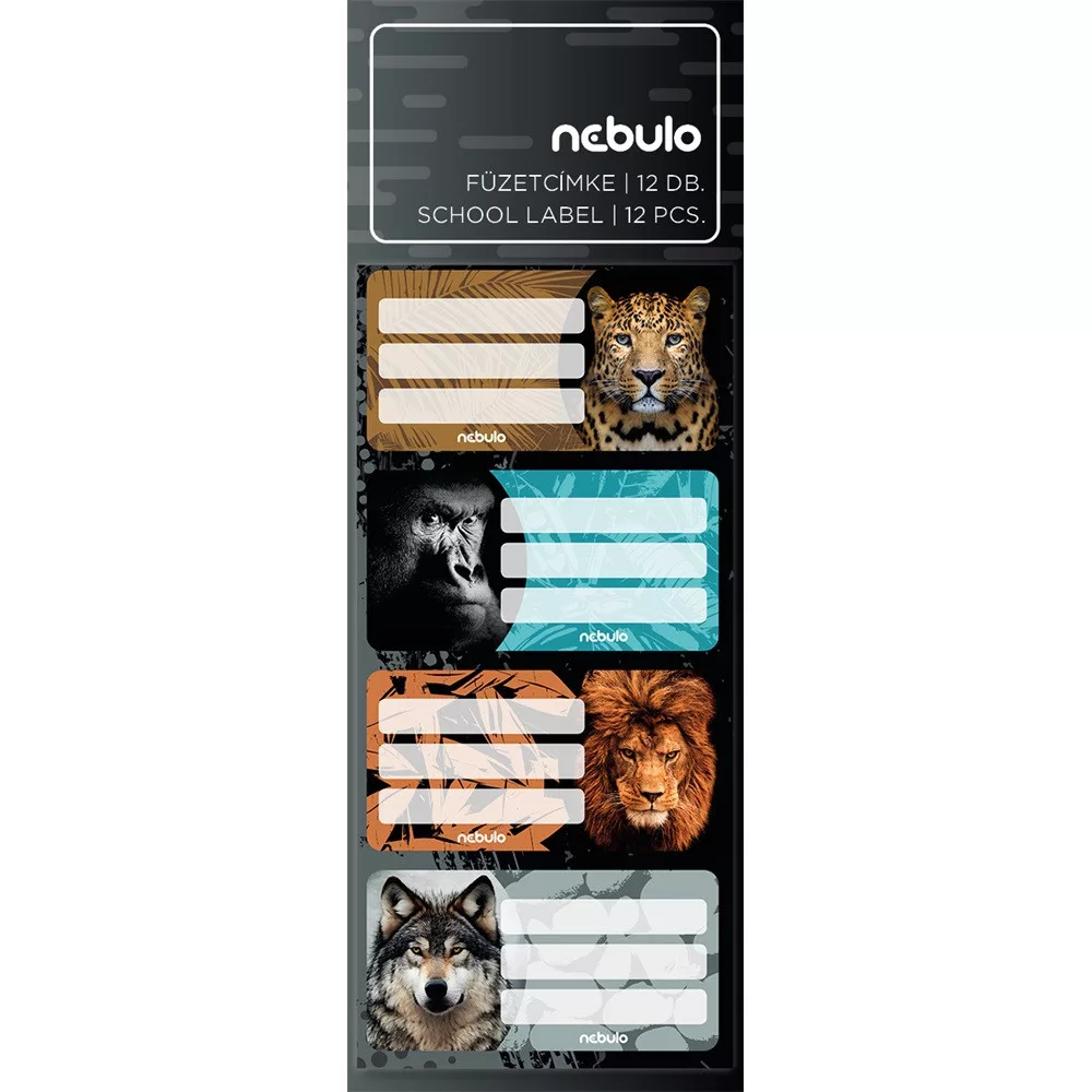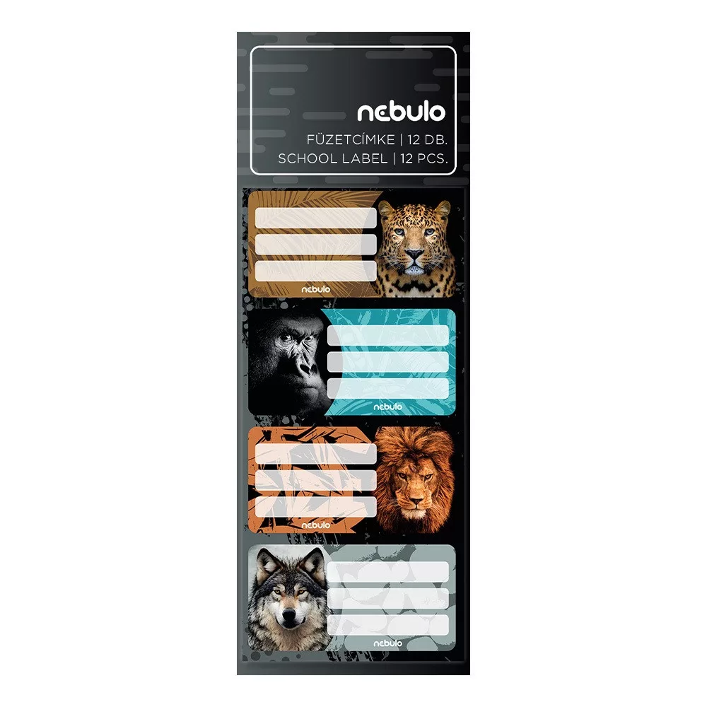 Füzetcímke 12db-os, Vadállatok, vegyes minták, Nebulo