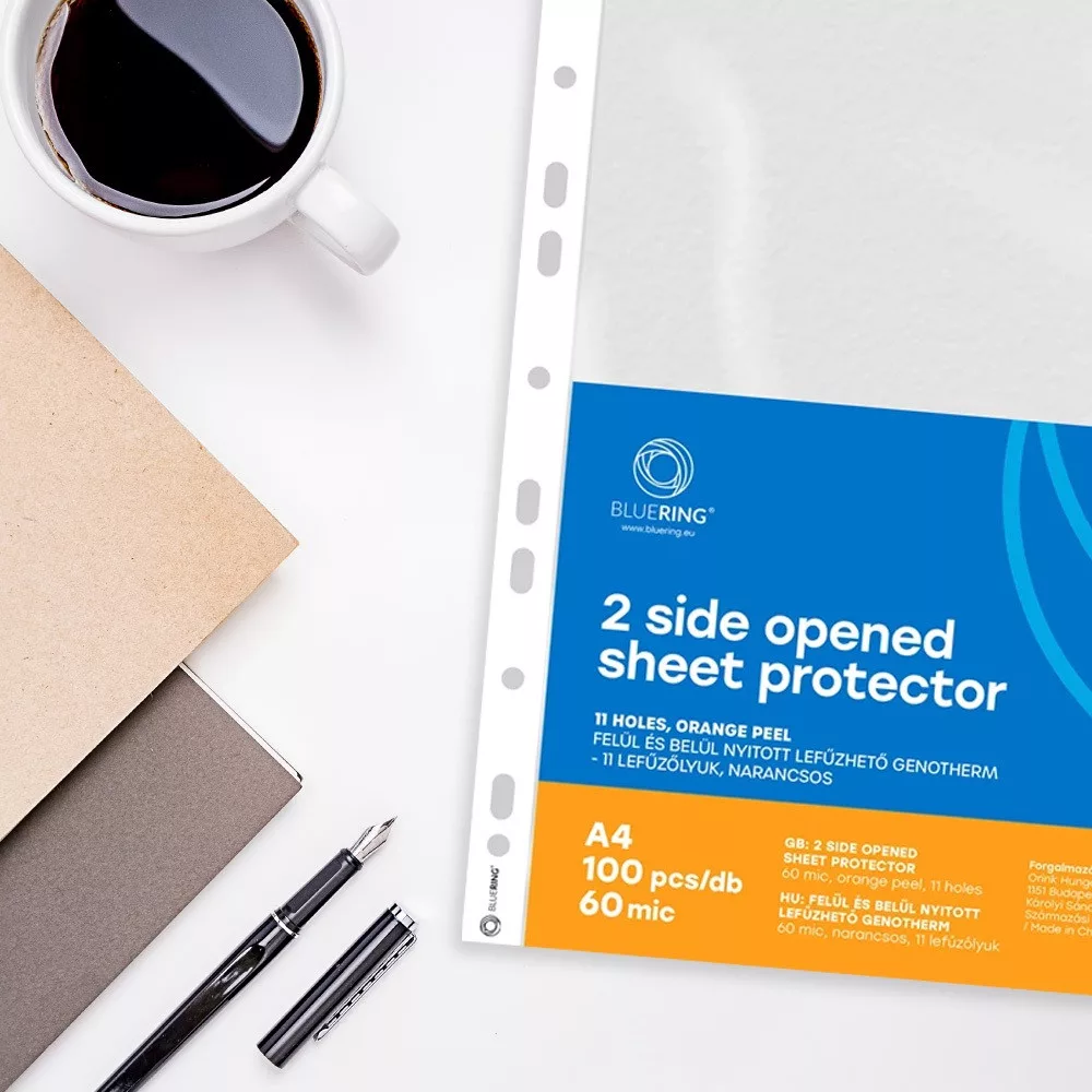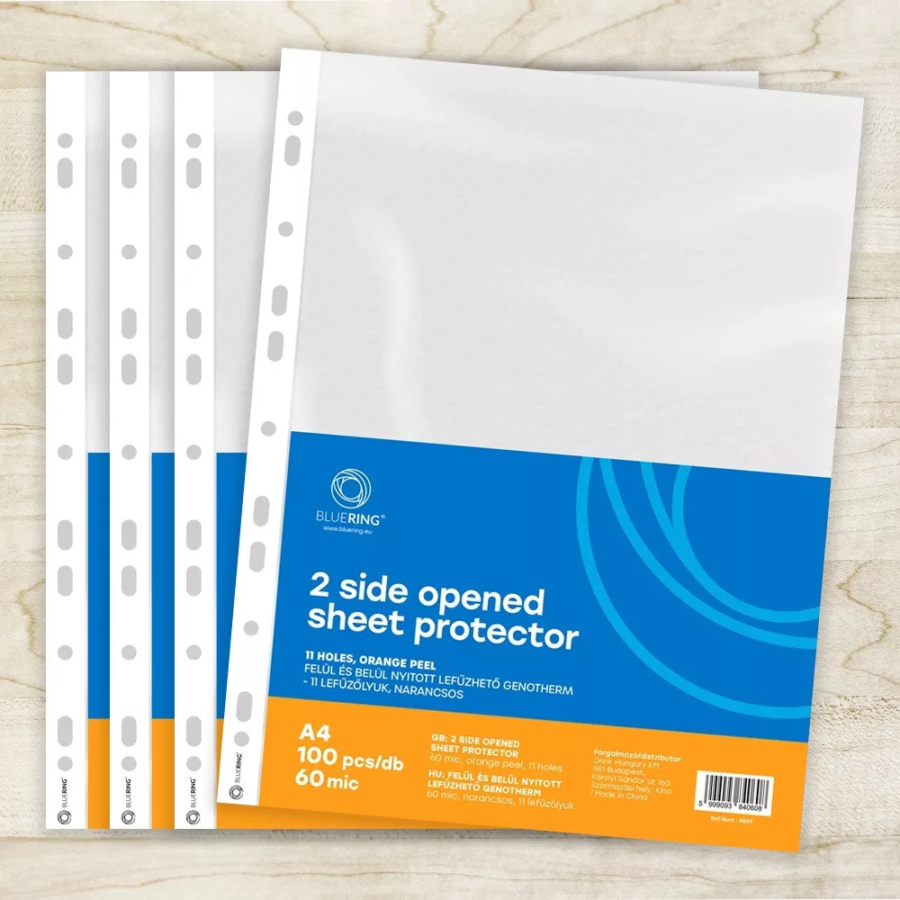 Genotherm lefűzhető, A4, 60 micron kétoldalt (felül és belül) nyitott narancsos Bluering® 100 db/csomag,