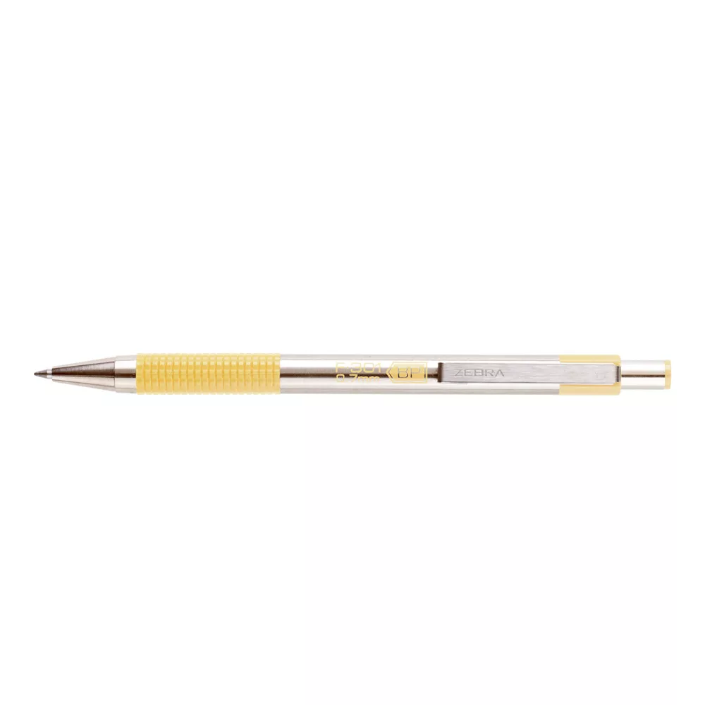 Golyóstoll 0,7mm, pasztell sárga test, Zebra F-301, írásszín kék gördülékeny és precíz írást biztosít, hogy minden szavad élesen tündököljön a papíron.