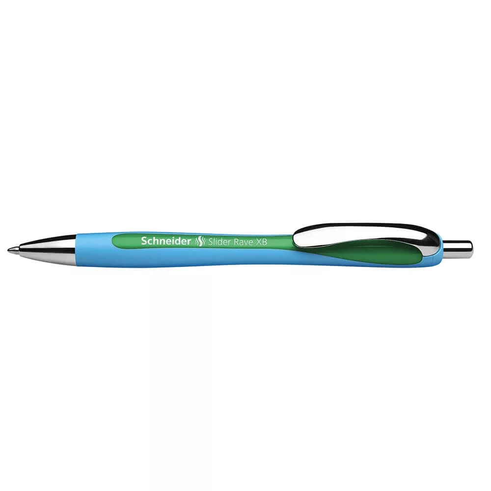 Elegáns és ergonomikus kialakítású Golyóstoll nyomógombos 0,7mm, Schneider Slider Rave, írásszín zöld, amely kényelmes használatot és tartós tintát garantál.