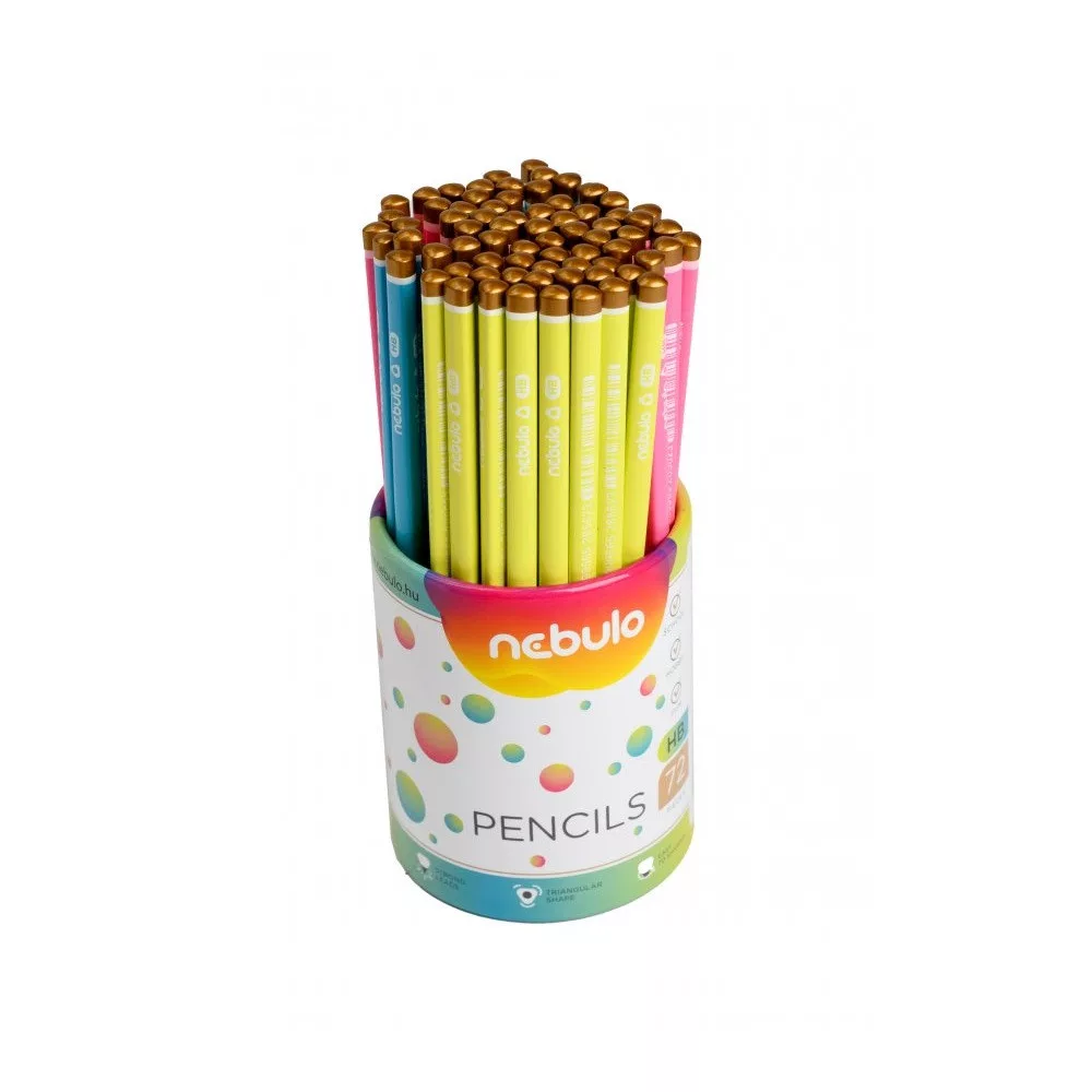 Grafitceruza HB, háromszögletű, 72 db/doboz, Nebulo, élénk színű test kiváló választás mindennapi használatra. Megbízható, tartós és praktikus megoldás!