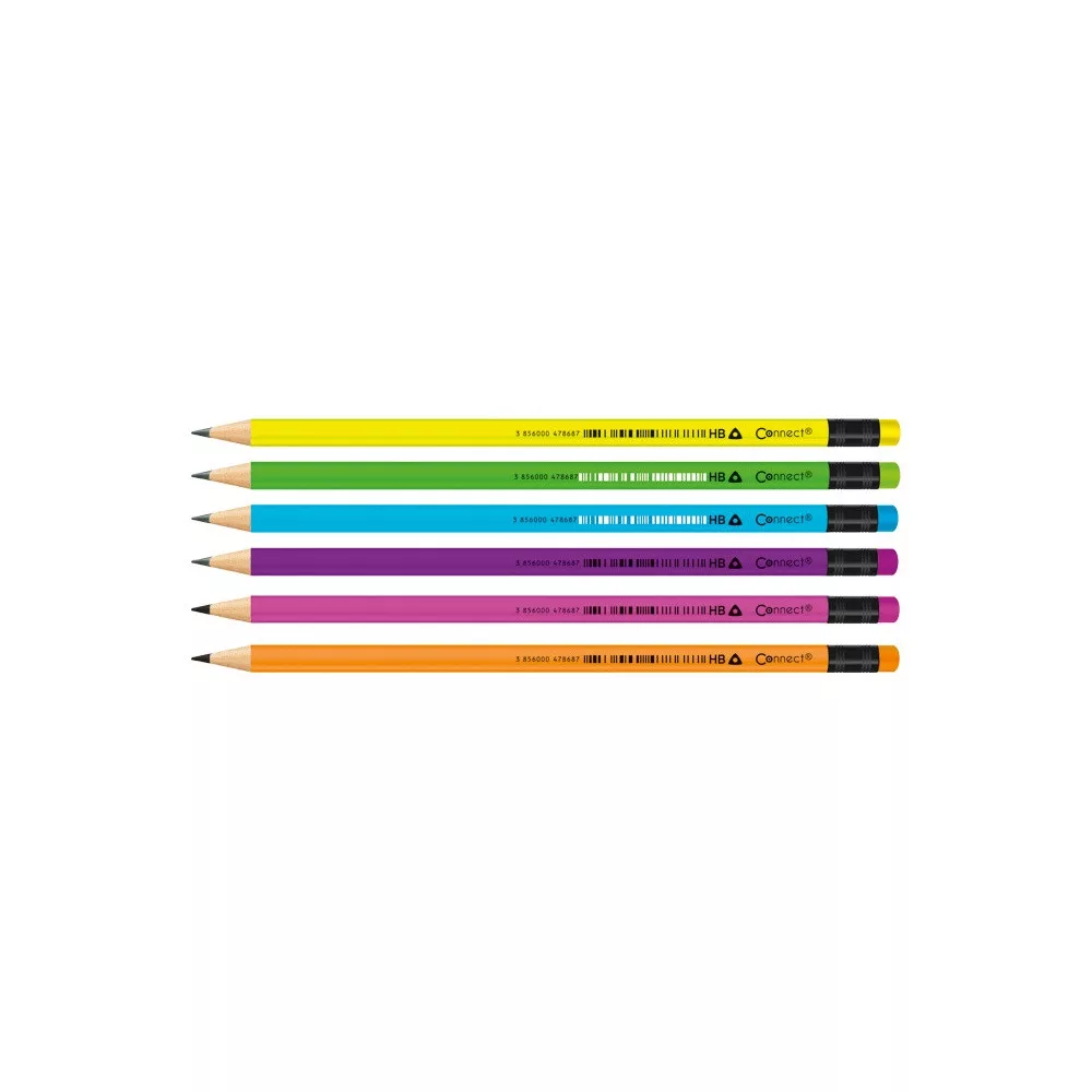 Grafitceruza HB, radíros, fluo színű test és radír, Connect 72 db/csomag, kiváló választás mindennapi használatra. Megbízható, tartós és praktikus megoldás!