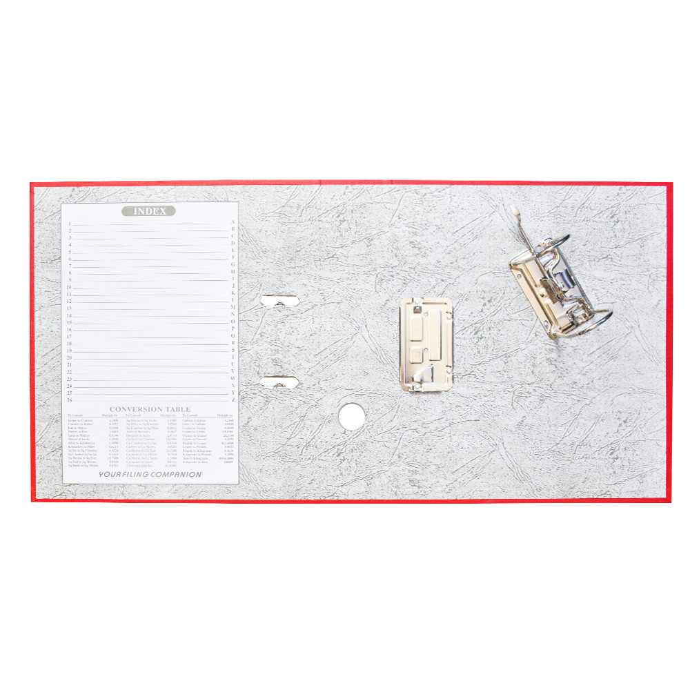 Emelőkaros iratrendező általános használatra. Kívül PP, belül fehér karton borítással, kihúzólyukkal. Cserélhető gerinccímke a feliratozáshoz. Tárolókapacitás 500 lap (A4 80gr.). A terméket lapra szerelve szállítjuk, a mellékelt emelőkaros szerkezet bepattintása gyors és egyszerű, 5 másodperc alatt elvégezhető és iratrendezőnk máris használatra kész! Katalóguskód: 12067