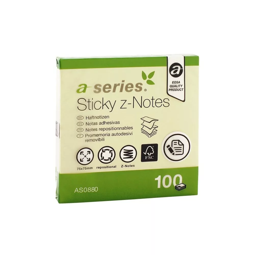 Jegyzettömb öntapadó, 75x75mm, 100lap, 'Z' A-Series, sárga kiváló választás mindennapi használatra. Megbízható, tartós és praktikus megoldás!