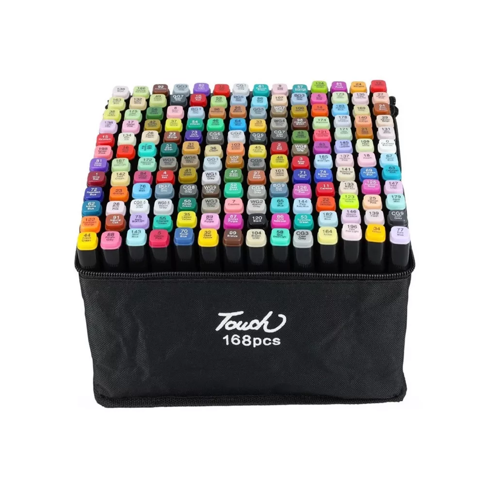 Kétvégű kreatív marker készlet, 168 klf.szín gyorsan szárad és nem kenődik el, így mindig tiszta és rendezett munkát biztosít.