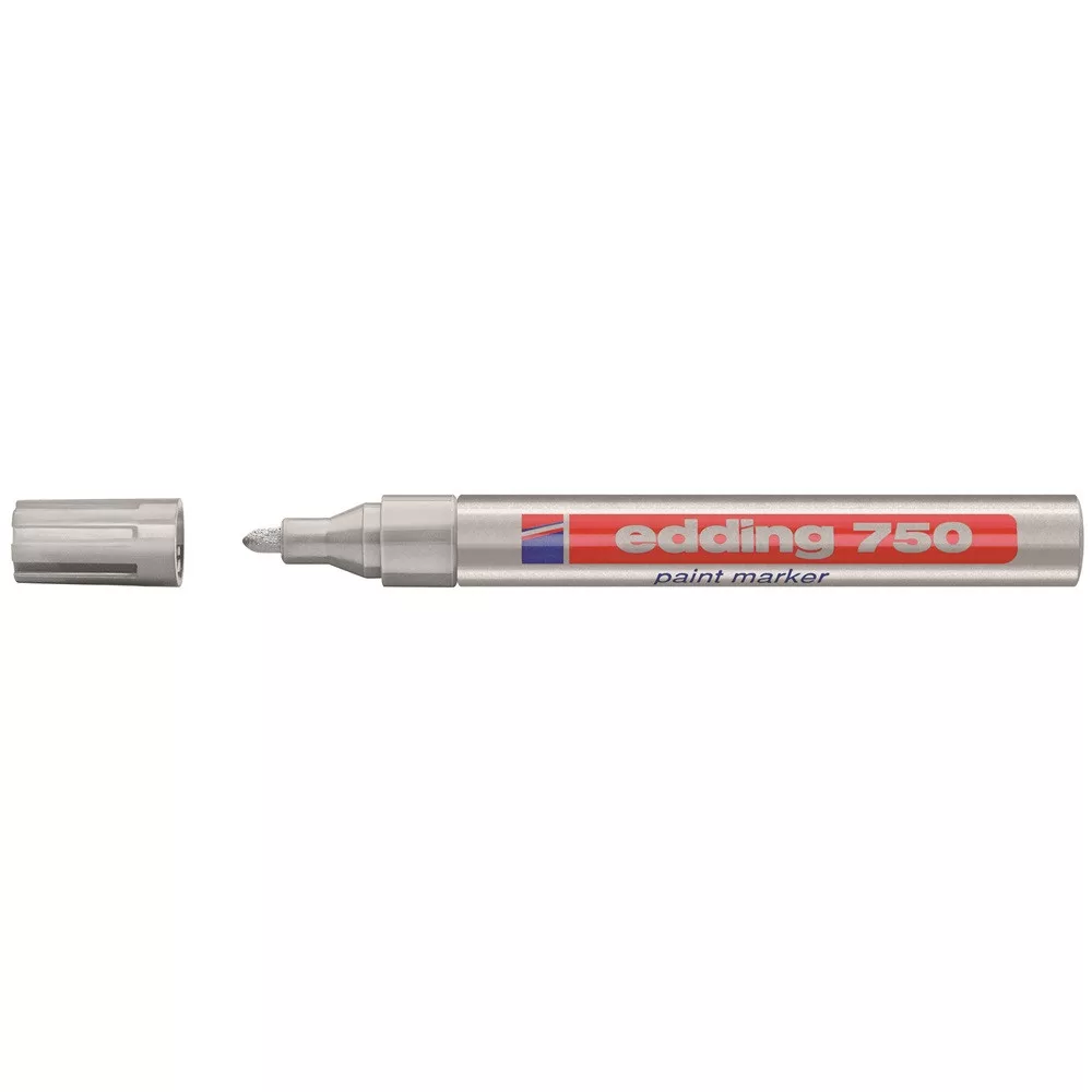 Hosszan tartó, nem fakuló tinta! Lakkmarker 2-4mm, kerek Edding 750 ezüst tökéletes választás kiemeléshez és kreatív munkákhoz.