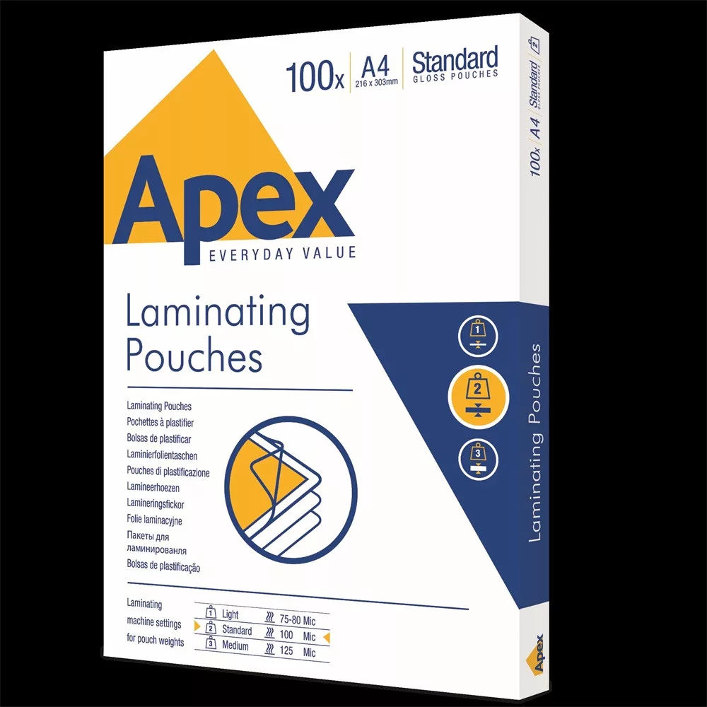 Lamináló fólia A4, 100 mic. 100 db/doboz, Apex Standard