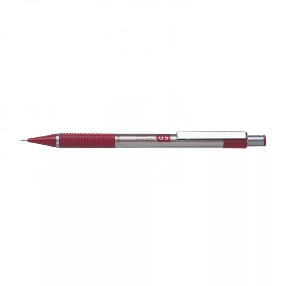 Az M-301 mechanikus ceruza az F-301 golyóstoll párja, rendkívüli népszerűségnek örvend, amit a rendhagyó forma, a rozsdamentes acél tolltest, a bordázott markolat és mindezek együttes hatása meg is magyaráz. A fém nyomógomb alatt beépített radír található. Markolat színe bordó. Hegyvastagság: 0,5mm. 10db/gyűjtő, 1000db/karton. Mechanikus ceruza, pixirón. Katalóguskód: 814