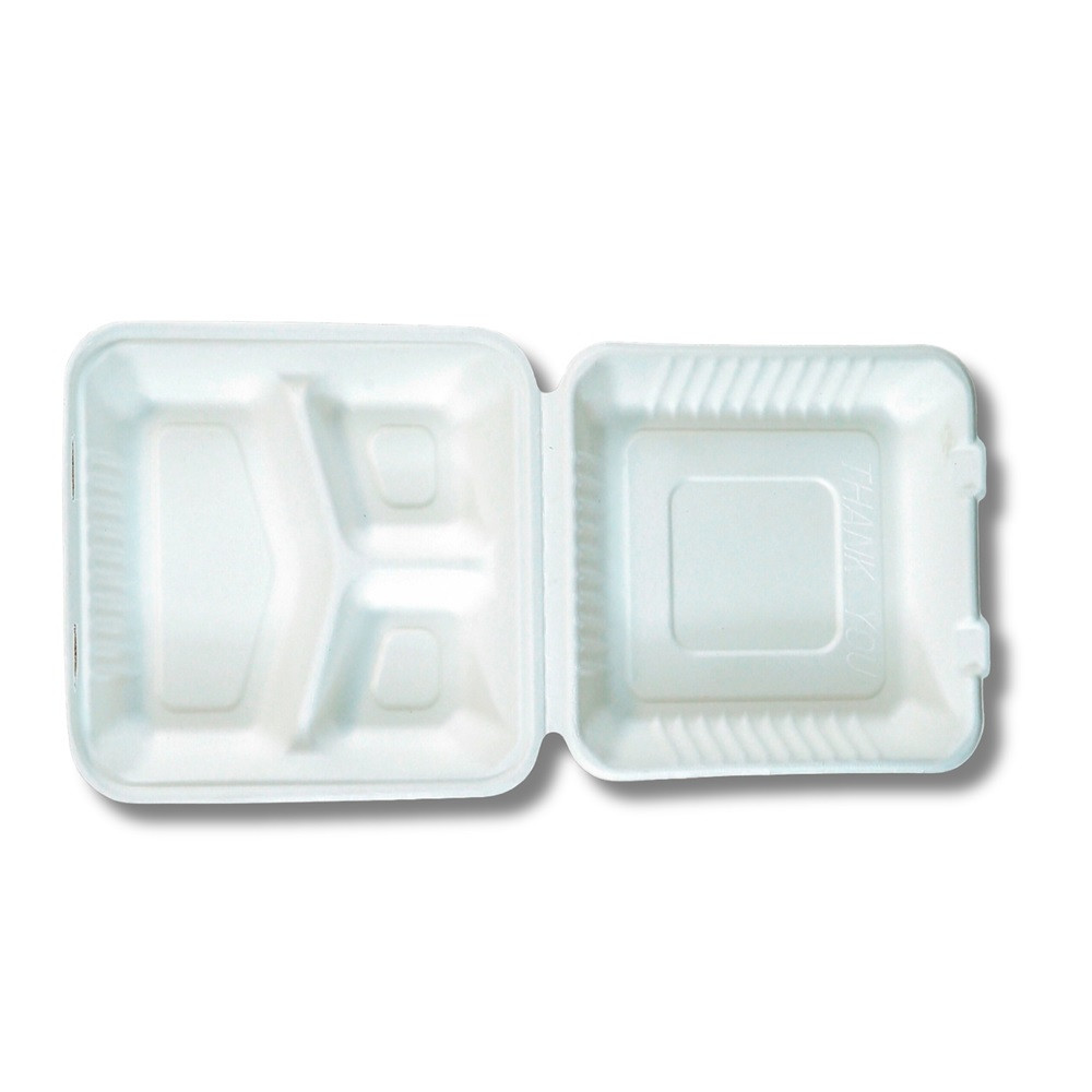 Papírdoboz ételes 3 részes HP4, 23 x 23 x 8cm komposztálható cukornád 100 db/csomag, natúr