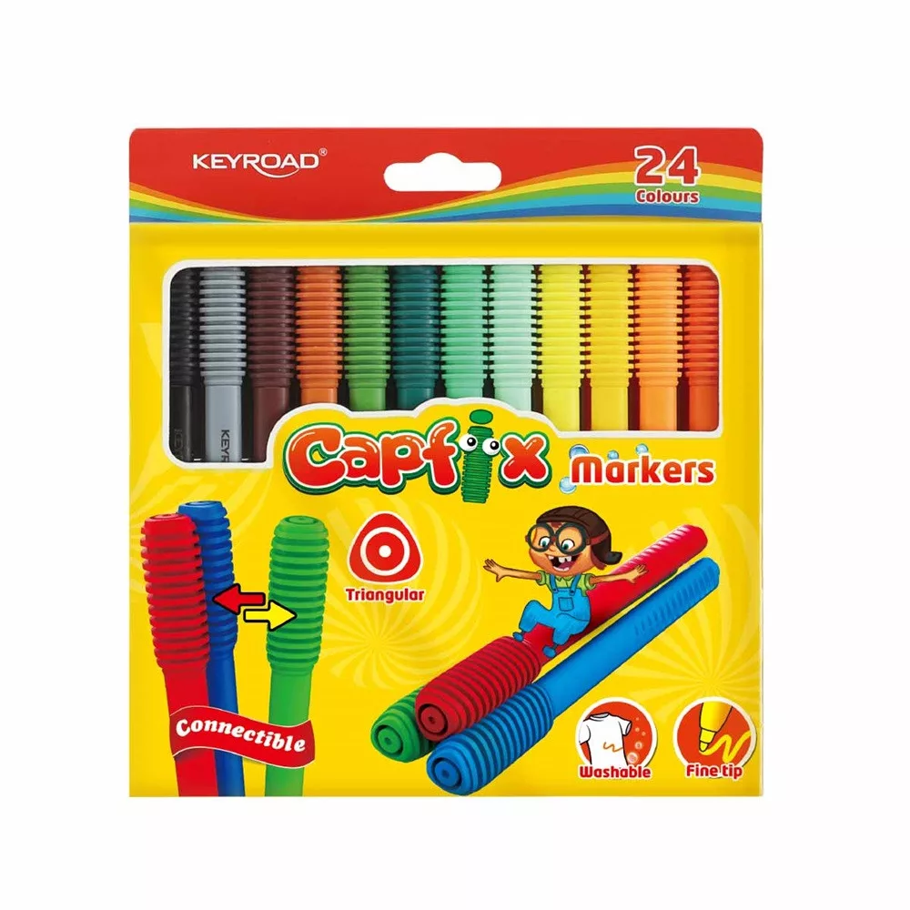Rostirón, filctoll készlet összekapcsolható fejekkel 24 db/bliszter Keyroad Capfix vegyes színek