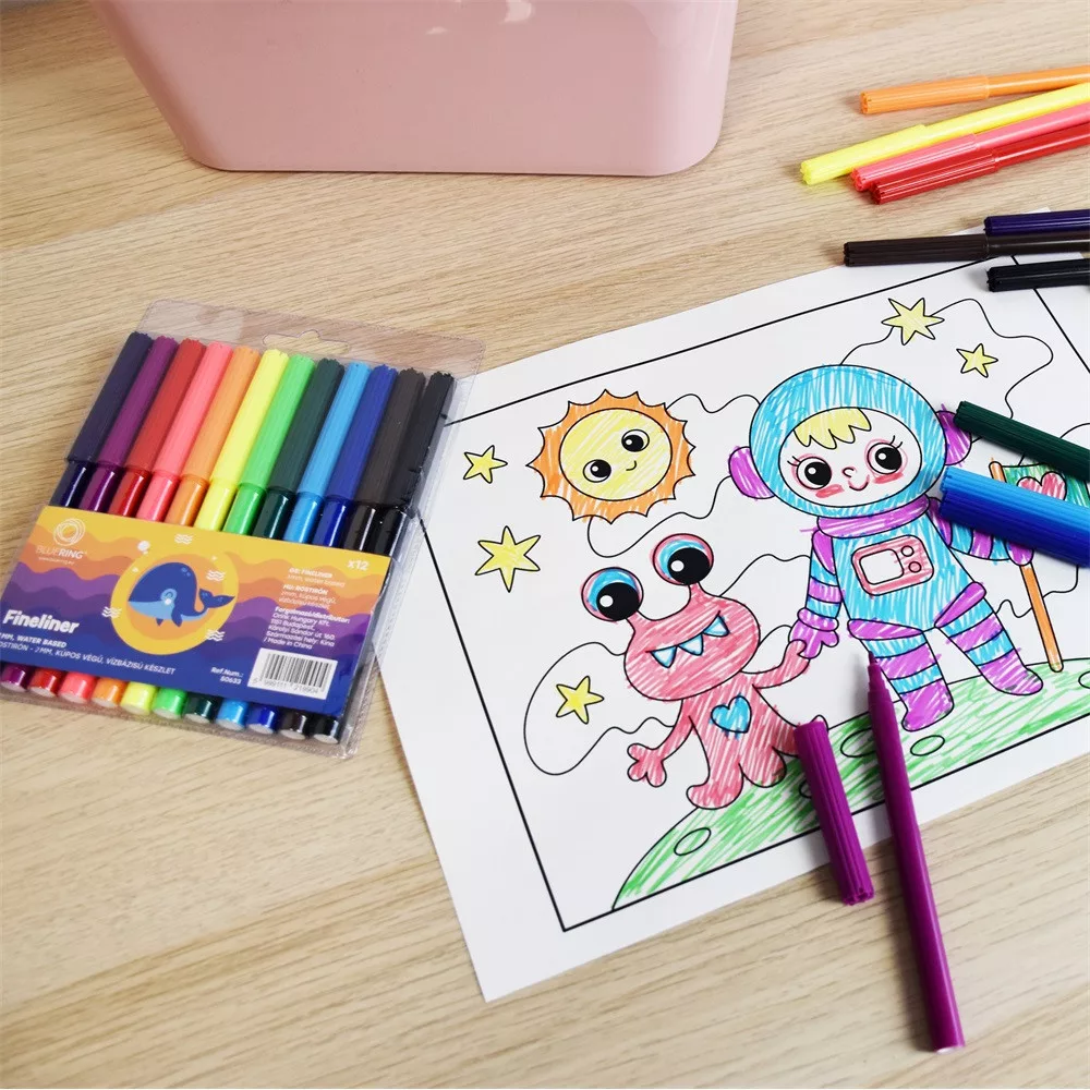 Rostirón kúpos végű filctoll készlet, vízbázisú, 1mm, Bluering®, 12 klf. szín,