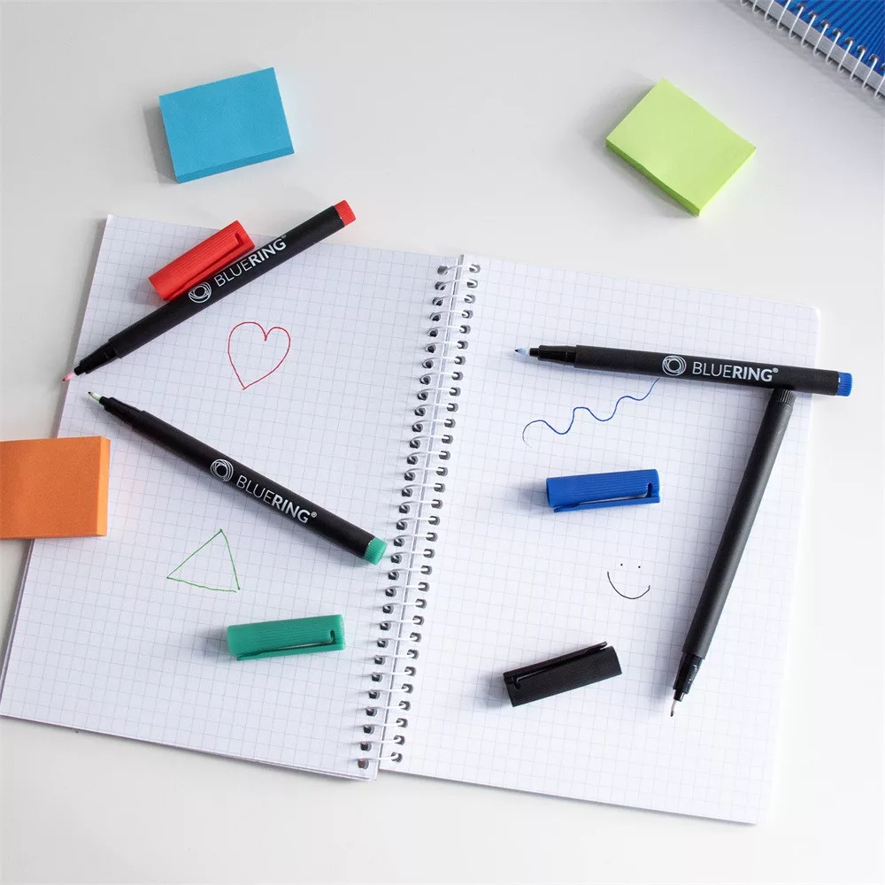 A készlet 0,5 mm vastagságú írást biztosít, ami ideális különféle anyagok jelöléséhez is mivel tartós alkoholos tintát tartalmaz.