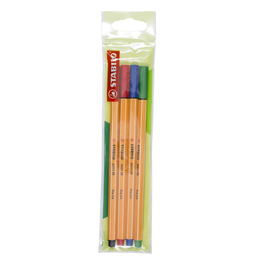 Rostirón, tűfilc készlet, 0,4mm, 32234 Stabilo Point 88, 4 klf. szín