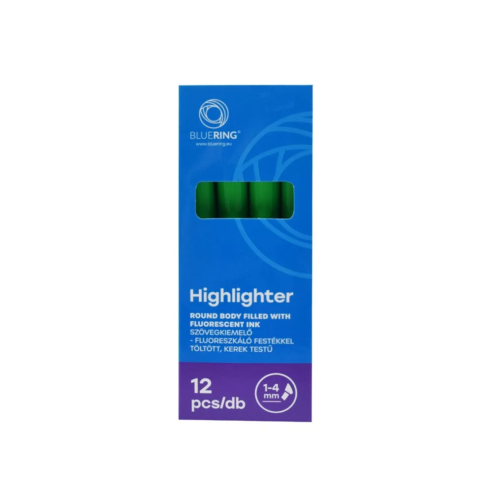 Szövegkiemelő kerek test Bluering® zöld kiváló választás mindennapi használatra. Megbízható, tartós és praktikus megoldás!