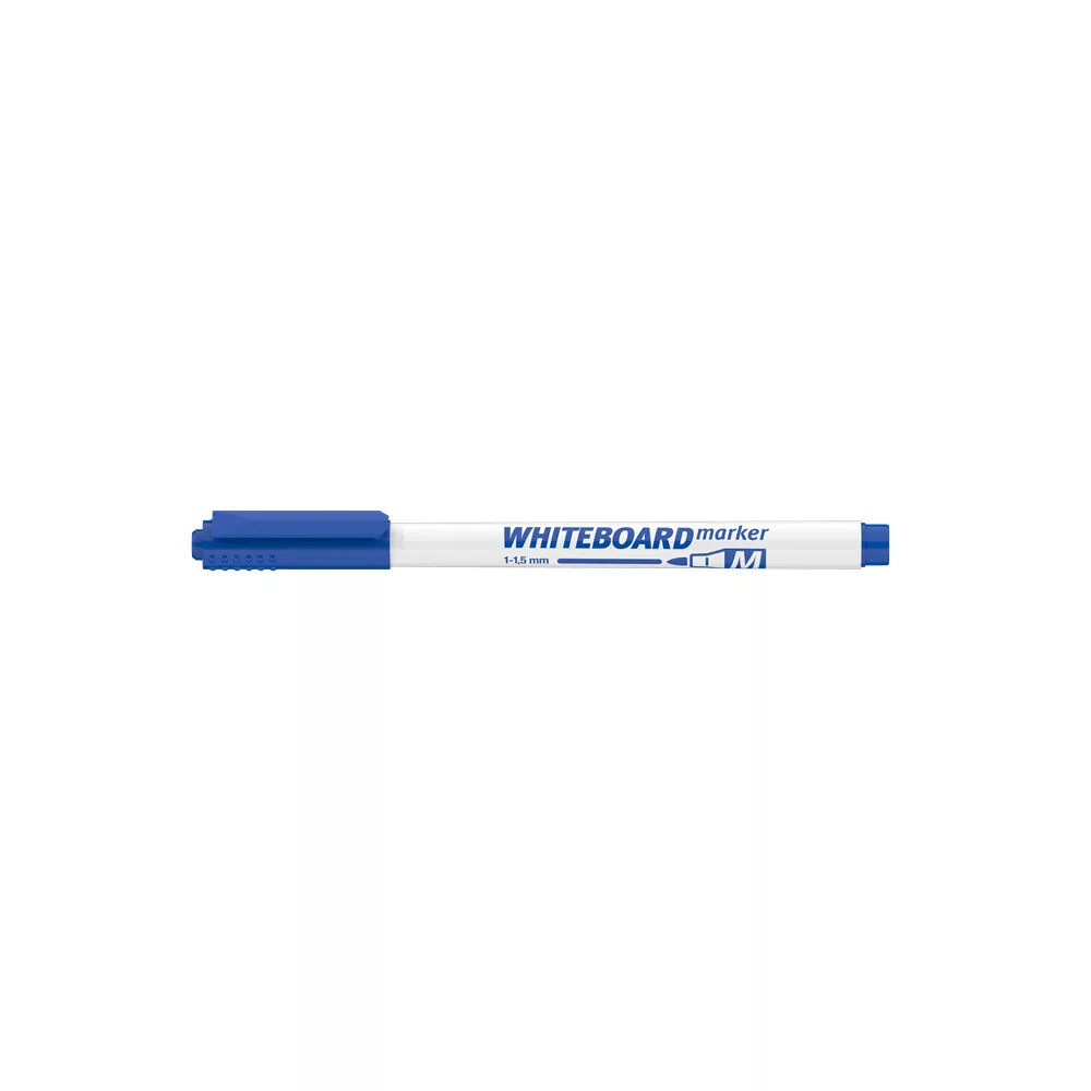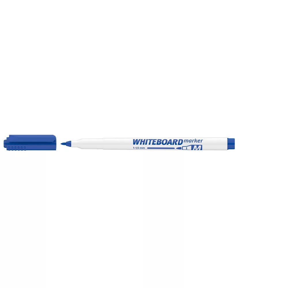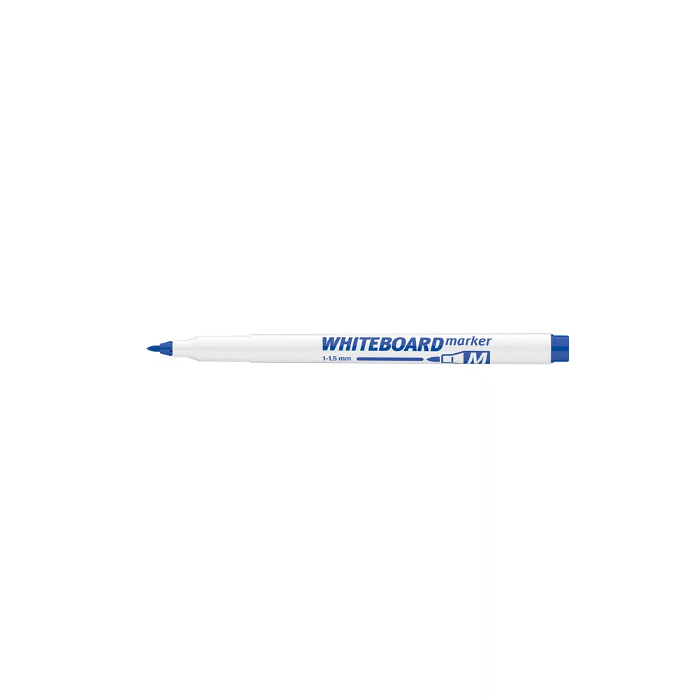 Whiteboard marker, kiszerelés: 40 db/dob írásvastagság 1 - 1.5 mm, írás színe KÉK, test színe fehér Fehér táblára való írásra, rajzolásra alkalmas marker, az írás szárazon letörölhető. Katalóguskód: 1305