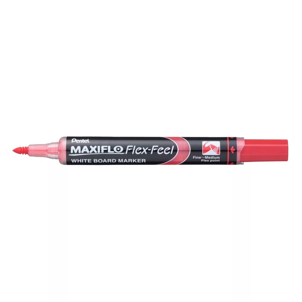 Táblamarker 1-5mm, hajlékony hegyű Pentel Maxiflo Flex Feel piros élénk színekkel és tartós tintával emeli ki a legfontosabb részleteket.