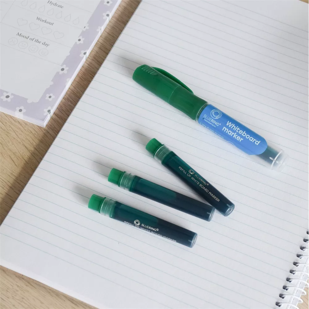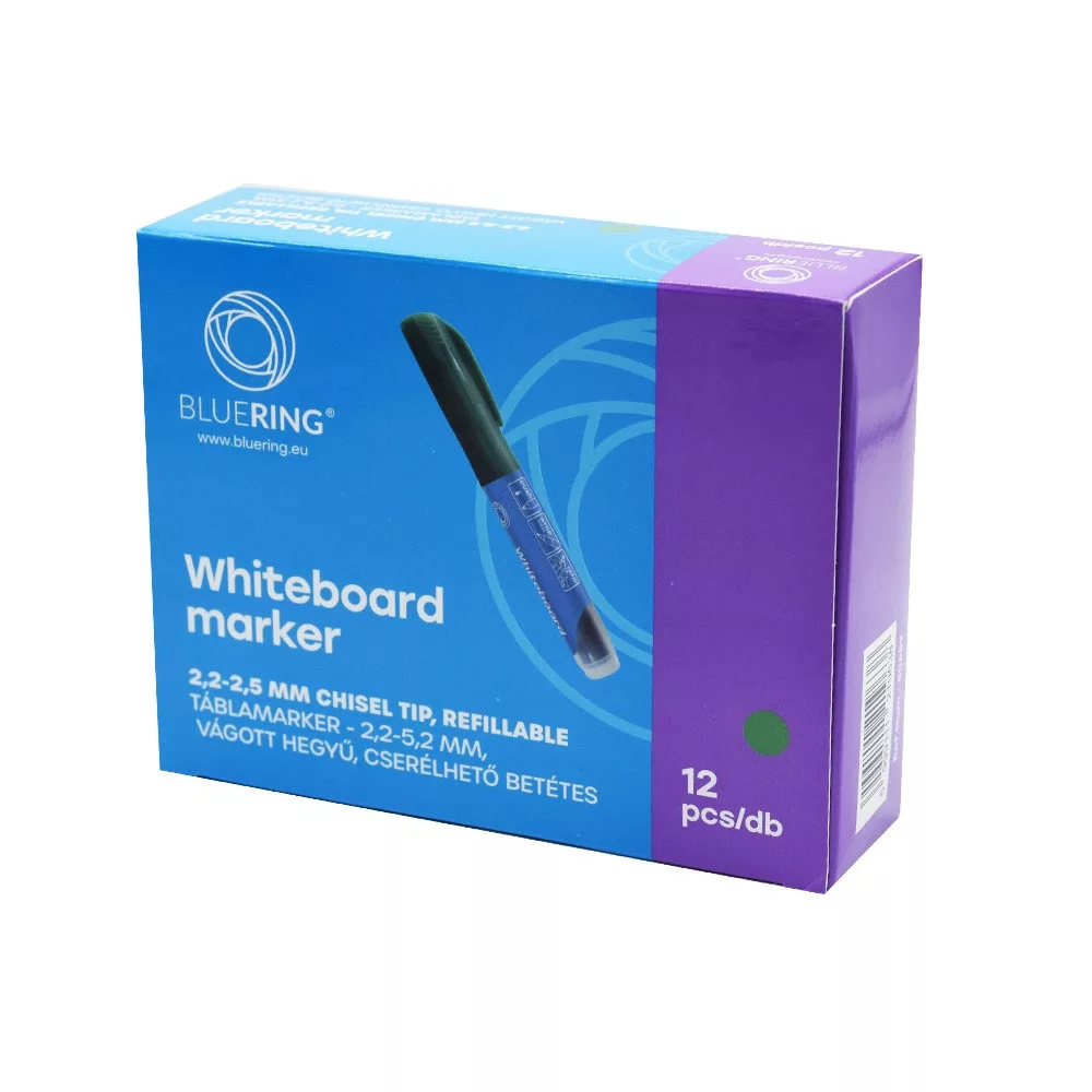 Hosszan tartó, nem fakuló tinta! Táblamarker 2,2-5,2mm, vágott hegyű, cserélhető betétes, Bluering zöld tökéletes választás kiemeléshez és kreatív munkákhoz.
