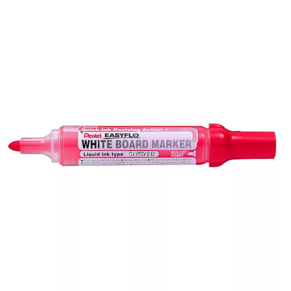 Táblamarker 2mm, kerek, utántölthető Pentel Easyflo piros gyorsan szárad és nem kenődik el, így mindig tiszta és rendezett munkát biztosít.