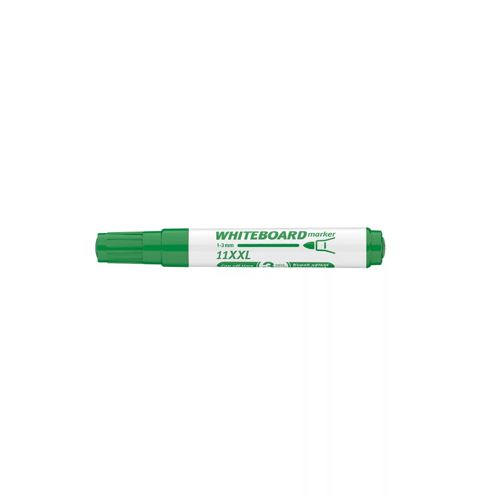 Fehér táblára való írásra, rajzolásra alkalmas marker."Cap-off" festékkel töltve, ezért néhány napig kupak nélkül sem szárad be. Az írás szárazon letörölhető. Megnövelt élettartam a nagyobb méretű testnek köszönhetően. Kerekített csúccsal .. Vonalvastagság: 3 mm. 10DB/DOBOZ Katalóguskód: 20193