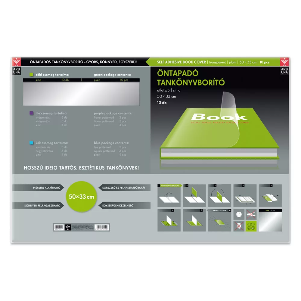 Professzionális és hétköznapi jegyzeteléshez is kiváló Tankönyvborító öntapadó, 50x33cm, 10 ív/csomag, Ars Una, víztiszta. Stabil kötés és minőségi lapok!