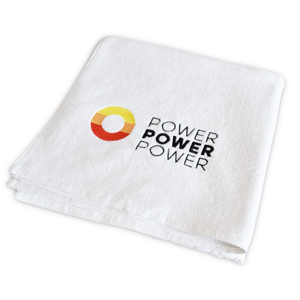 Fehér törölköző, amely 70 x 140 cm-es mérete ideális kéztörlőként vagy arctörlőként való használatra.