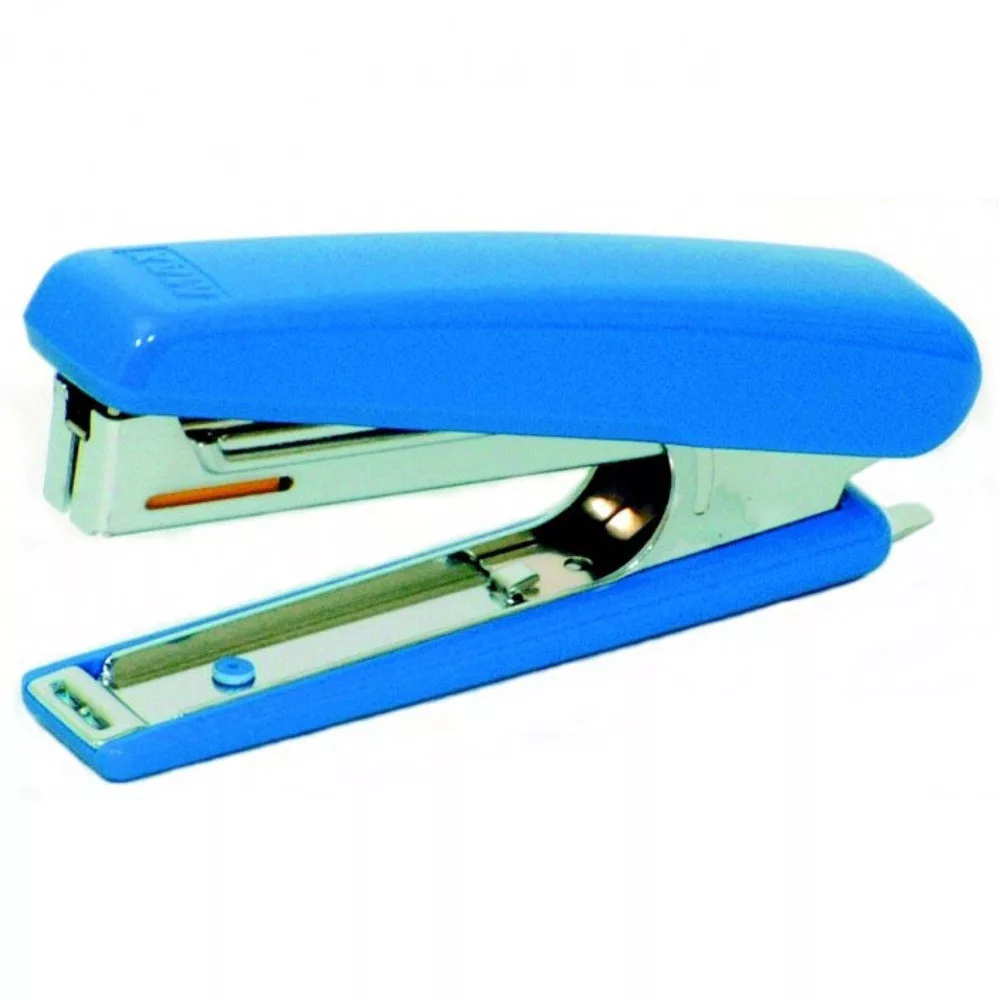 Krómacél testű, színes műanyag borítású tűzőgép, dupla nagyságú kapocstárral, beépített kapocskiszedővel, és könnyen kezelhető töltési mechanikával. A kapocstár oldalán kialakított nyíláson látható a kapocs mennyiség.Szétnyitott állapotban alkalmas a hajlítás nélküli tűzés ("szegelés") funkcióra (plakát, fénykép, dekorációk rögzítésére fa, vagy falfelületre).Tűzési mélység: 65 mmÁttűzhető lapszám: 20 lap (64g.) 16 lap (80 g.)Kapocs: No.10-1M Katalóguskód: 1476