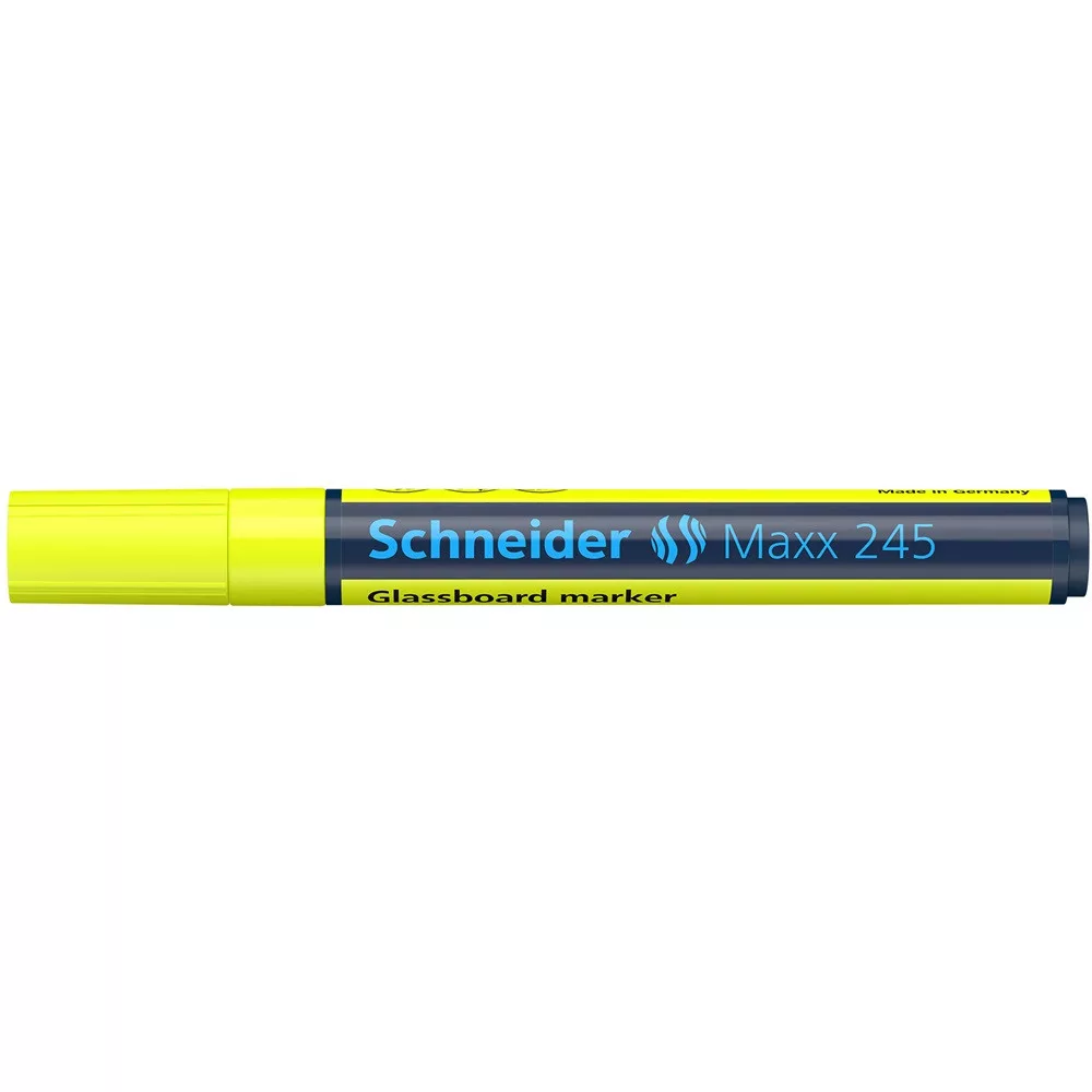 Üvegtábla marker 1-3mm, Schneider Maxx 245 sárga élénk színekkel és tartós tintával emeli ki a legfontosabb részleteket.