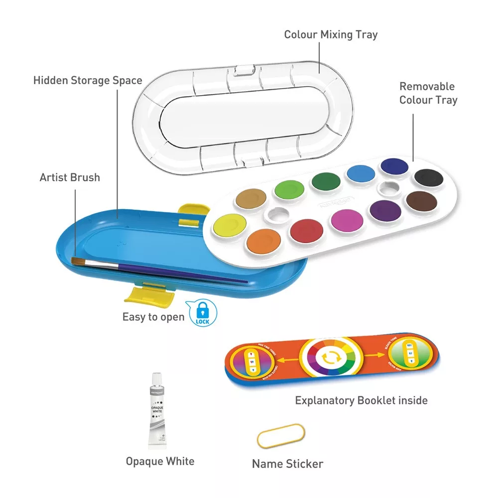 Vízfesték készlet 12 darabos, ecsettel és fehér fedőfestékkel Keyroad vegyes színek