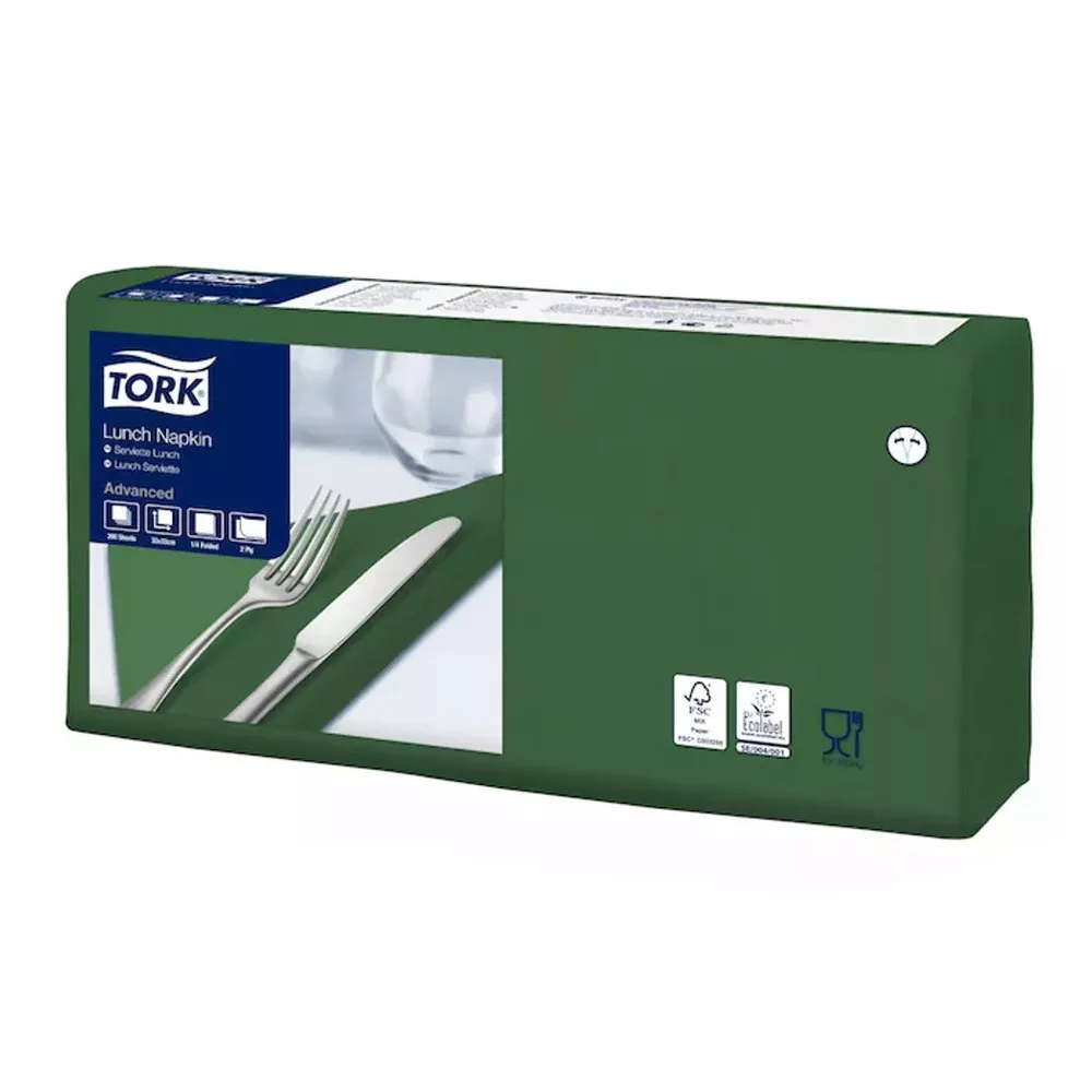 Szalvéta 2 rétegű 1/4 hajtás lapméret 32,8 x 32,5 cm 200 lap/csomag Lunch Tork_477214 sötétzöld